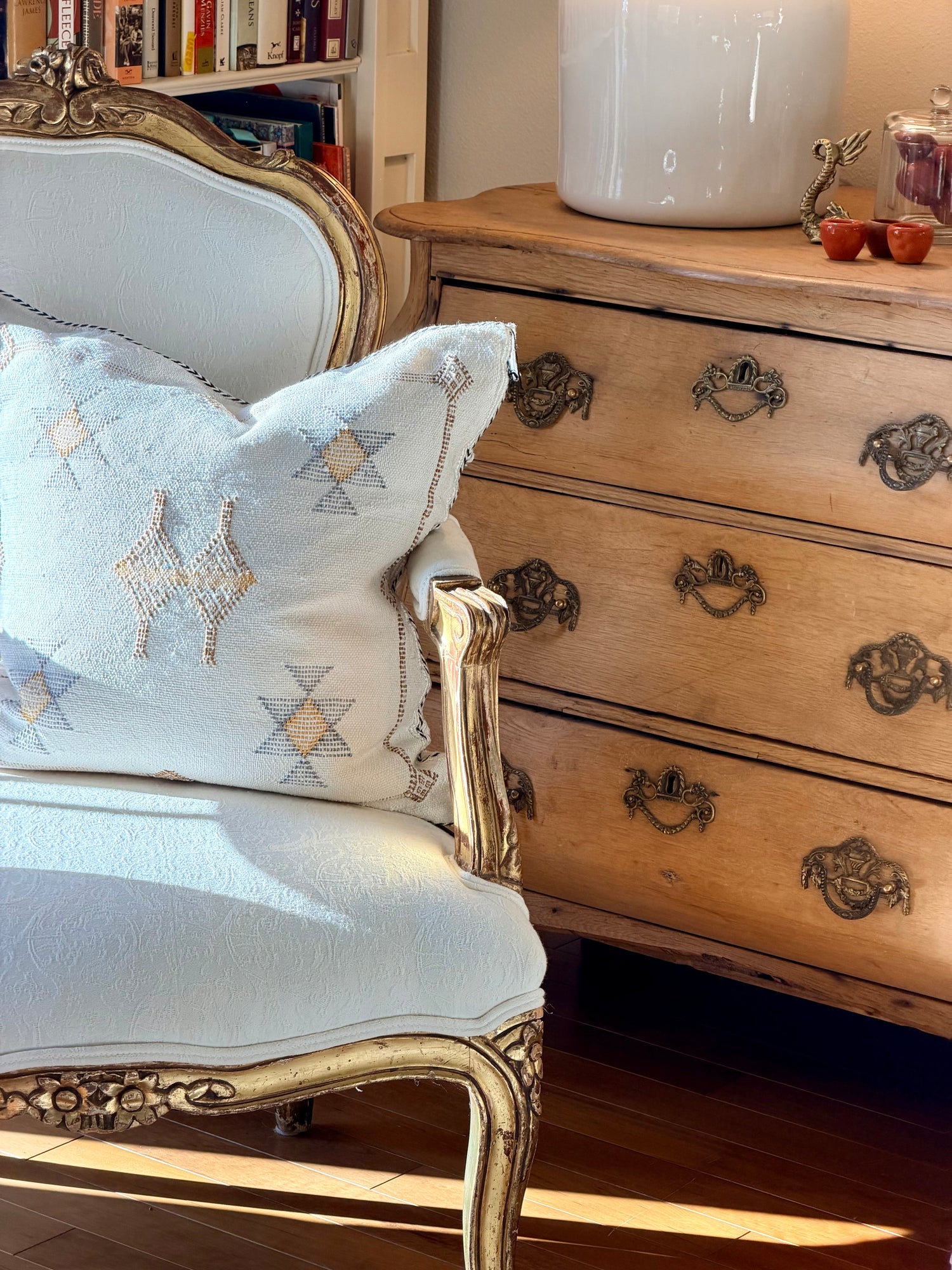 Designer pillows, Moroccan and Turkish pillows, as well as beautiful everyday large canvas market and beach bags.